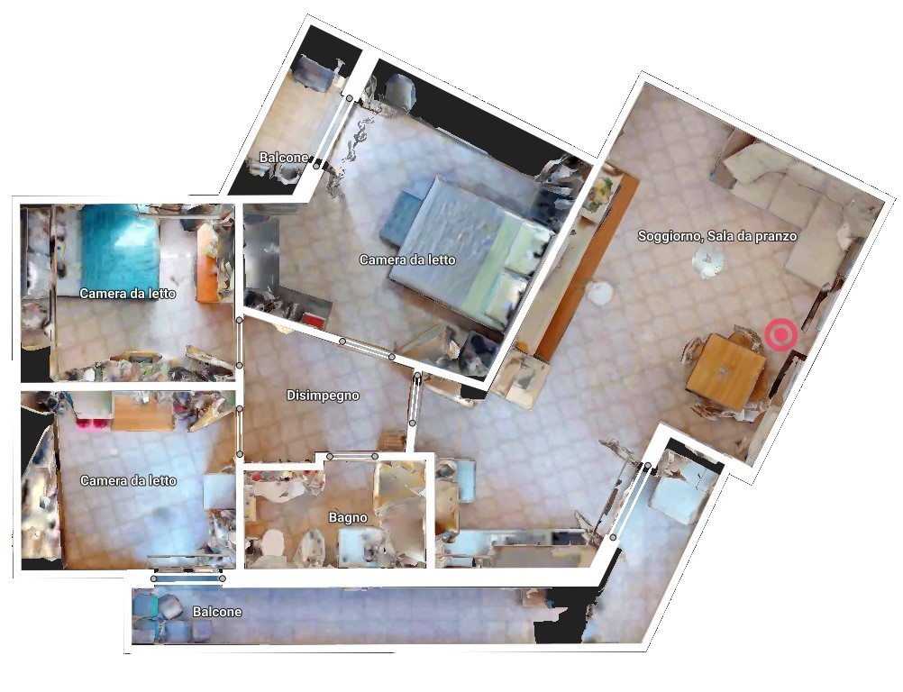 Virtual tour 3d dell'immobile e DollHouse, utili per fare una visita guidata dell'immobile (libera o già impostata, visibile cliccando la freccia in basso a sinistra), analizzare i dettagli, visualizzare la pianta e prendere le misure (tutto dal pannello in basso a sinistra).